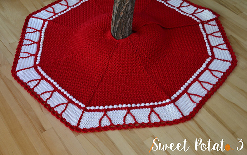 The O’Christmas Tree Skirt is designed to become a family heirloom. I have been wanting to make a tree skirt for many years, but hadn’t found one that I fell in love with. I designed this one to be eye catching, have some color play, a little cabling with lots of texture. I hope you love this as much as I do. Enjoy creating it and be sure to share your work of art this holiday season.