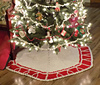 The tree skirt is made to be about 54” across or 24” from center of skirt to edge, and is designed as a full circle that wraps around your tree with no gaps.