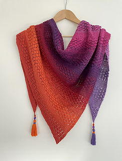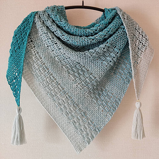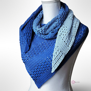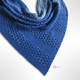 The Ocean State of Mind shawl is crocheted from one side to the other which creates the shape of a slightly asymmetric triangle, almost symmetrical. The combination of moss stitches and post stitches in this pattern gives the shawl an interesting and modern texture. This shawl can be made in any size which is described in the pattern. You can find yarn suggestions and more photos on my blog:
