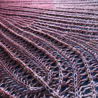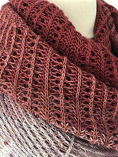 Octameric shawl is an exploration of brioche lace. The shawl starts with single colour brioche and then progressively introduces the brioche lace and then additional colours. To finish, brioche lace gives way to plain brioche and then to (non-brioche) lace. Four skeins of fingering weight yarn make this semi-circular shawl a generous size that can comfortably be wrapped around your shoulders.