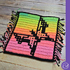Mosaic crochet is single crochet and double crochet stitches. The double crochet stitches cover some of the other color’s single crochet stitches to create the design. My patterns instruct you to cut your yarn at the end of each row. The back is striped but often gives a faint impression of the pattern on the front (sort of like illusion knitting).