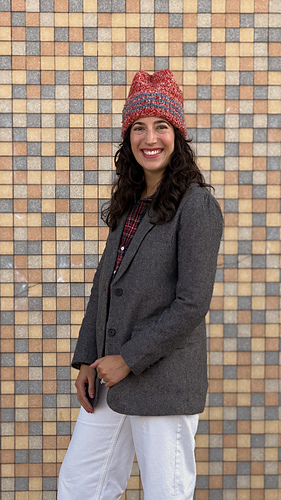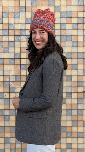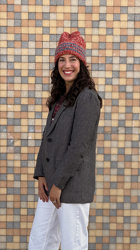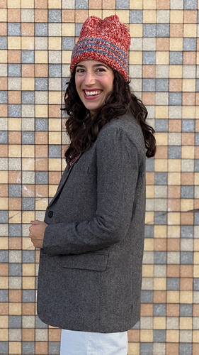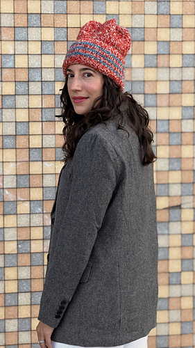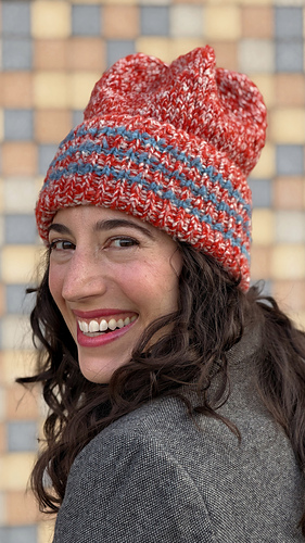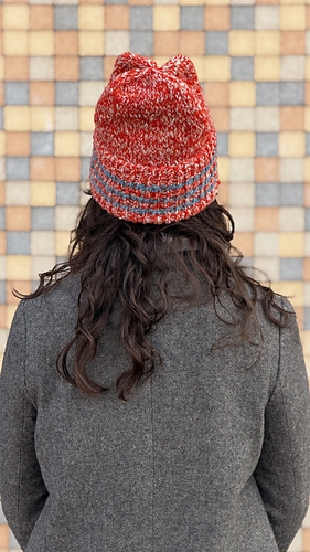 Hat is worked with 1 strand of each MC held together in the round from the bottom up. Optional CC stripes are worked by holding 2 strands of CC together.