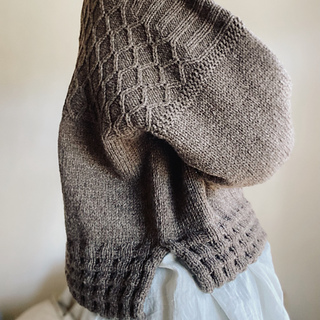 Oldies は, ボトムアップで編むリラックスサイズのセーターです. 前後のヘムをそれぞれ編んで繋げたら, 脇下まで輪で編み進みます. 脇下で前後の身頃を分けてから ‘Simple diamond stitch’ をそれぞれ往復で編み, 肩はリブで仕上げます.
