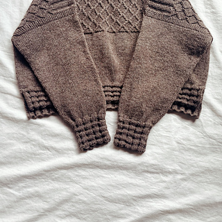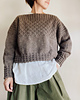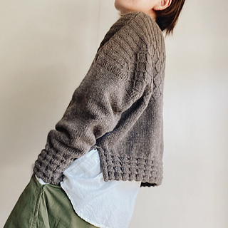 前後の肩をThree-Needle-Bind-Offで繋げて, 袖はアームホールから目を拾い, 袖口に向かって輪で編みます. このセーターは, ゆったりの身幅とバランスが良いクロップ丈のデザインですが, 袖も身頃も長さはお好みで調整ができます.