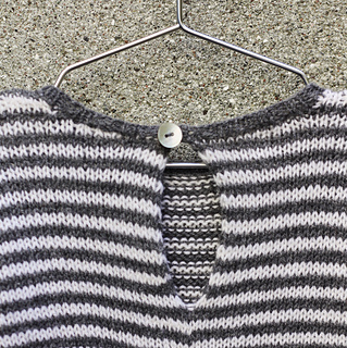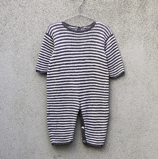 Olive’s Jumpsuit is a roomy all-in-one suit with narrow stripes. It is worked from the bottom up, both flat and in the round, using 1 strand of Merino, Cotton Merino or Pure Silk.