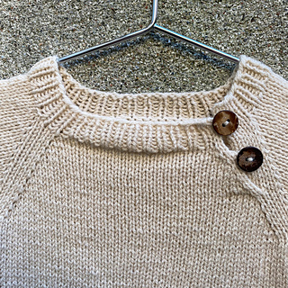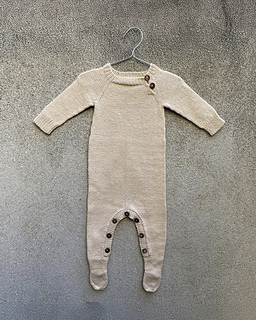 Olive’s Onesie is a simple all-in-one babysuit with feet. It is worked from the top down using 1 strand of either Merino or Cotton Merino. An opening on the inside of the legs and a small opening on the front of the raglan yoke simplify diaper changing and dressing. Both openings are closed with buttons. The back is shaped with German short rows.