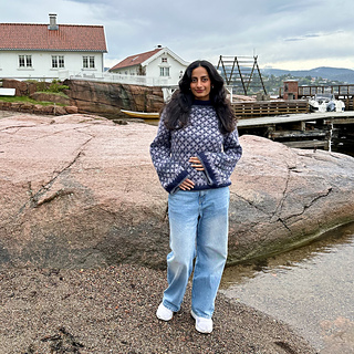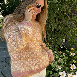 Garn: Tynn silk mohair fra Sandnes garn. Strikkes med dobbel tråd.