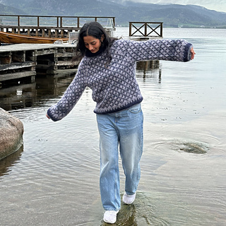Genseren strikkes med dobbel tråd tynn mohair, og blir et fnugglett plagg selv om den er mønsterstrikket. Plagget strikkes nedenifra og opp og har raglanfelling. På halsen strikkes det forkortede rader som gir en liten utringning foran.