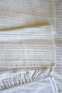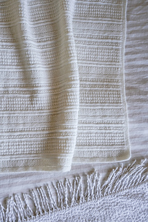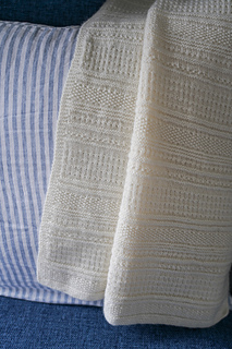 A beautifully textured knitted blanket featuring a classic garter stitch edging. The simple yet effective combination of knit one, purl one, and alternating knit and purl textures creates an understated striped design with plenty of visual interest.