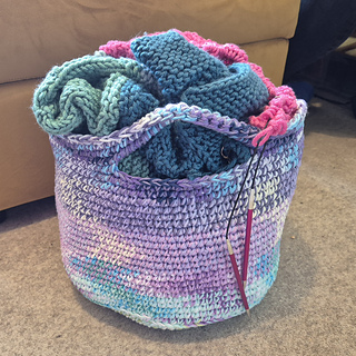 Crochet this happy, one skein basket in no time, learning a few essential techniques, too! This sweet, little basket may be used for many different purposes. It is crocheted from the bottom up, starting with a magic ring circle.