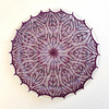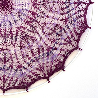 “My brioche mandala begins at the centre and grows outward in gentle waves, with regular increases shaping a floral-inspired circular design,” explains Sandra Nesbitt. “The rhythmic nature of brioche stitch combined with the meditative repetition of the pattern invites a mindful knitting experience - echoing the calming, centring essence of traditional mandalas.” Sandra has combined a self-striping sock yarn with a laceweight kidsilk yarn in a solid colour. For display purposes, the mandala is blocked, stretched and then joined to a 40cm embroidery hoop.