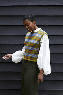 Fair Isle tank tops are classics you will wear forever. This beauty is a joy to knit, in vibrant Erin Tweed colours, with a ribbed button side fixing. Adorable, timeless - you’ll wear it over and over again! This is a simple Fair Isle chart to follow, and you’re working flat, back and forth, so it’s a good project for those adventurous beginners who are ready for some colourwork!