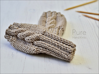 A simple repeat cable pattern decorates the outside of these reverse stocking stitch mittens. You will just need to know how to work a simple C6F and C6B for these easy-knit mitts.
