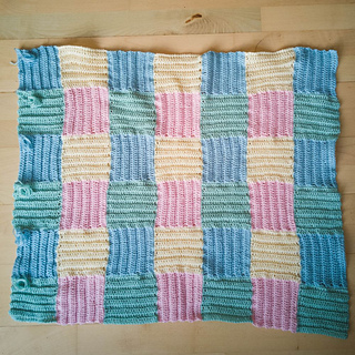 The design focuses on repetition and modular construction. Each square is worked in rows using treble crochet and back loop stitches, creating a textured surface with subtle variation between panels. The squares are then assembled into front panels, back, and sleeves, allowing the construction to be broken down into manageable steps.