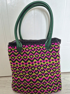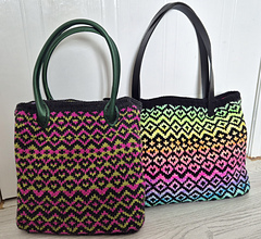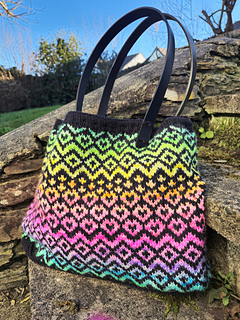 The Padstow Tote is a fun stranded colour work bag. Choose from two sizes. Use a main colour and a set of mini skeins or one more more solid contrast colours.