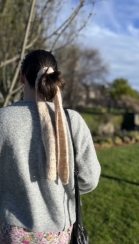 Though designed to be knitted with one ball of 25g cashmere yarn, you can knit the Pamir Scarf in any yarn, at any weight (just use the recommended needle size for the yarn you’ve chosen). A Pamir Scarf in thicker yarn (in Worsted or Bulky weight) can be a great winter scarf; while a thinner version (in lace or fingering weight) can be worn as a hair accessory or tie. It’s a great project for using leftover half balls/skeins of yarns in your stash.