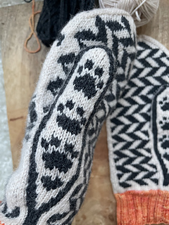 Mönstret börjar med 68 maskor och ökar till 80, om du stickar löst behöver du sticka med 2 mm stickor. Jag gillar att ha många maskor för att få plats med så mycket mönster som möjligt på mina vantar.