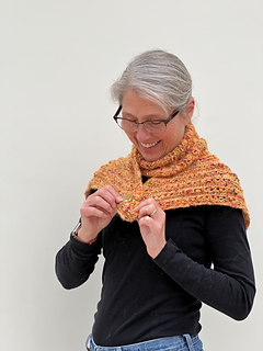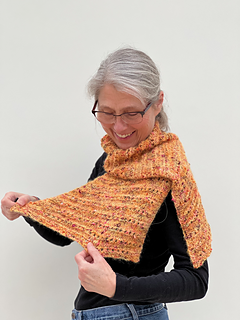 Small size shawl is shown in yellow: yarn A shade Pumpkin Everything and yarn