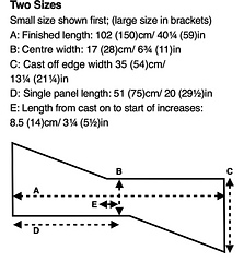 After a straight centre section, the triangles are worked identically and the resulting shawl has two opposite ends of equal width. However the outer points of the shawl are offset due to the opposite placement of each triangle increases.