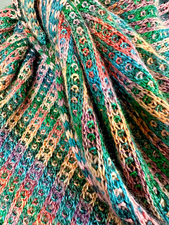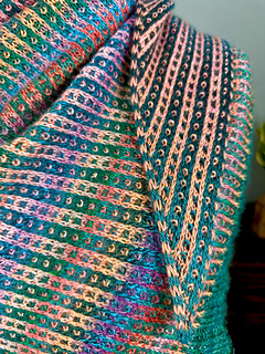 Amber King’s shawl starts at the tip and can easily be adjusted to your own preferences. The lovely mosaic pattern is very easy to remember and almost knits itself.