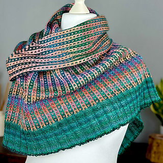 Amber Kings Tuch wird an der unteren Spitze begonnen und lässt sich daher prima an die eigenen Vorlieben anpassen. Das hübsche Hebemaschenmuster ist sehr einprägsam und strickt sich fast von selbst.