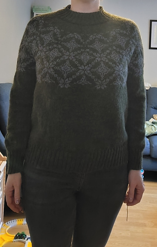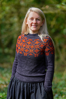 The construction is a simple top-down round yoke with no complicated shaping, allowing the focus to remain on the stranded colourwork. Because the motifs are quite intricate, using high-contrast colours is recommended to ensure the design stands out clearly.