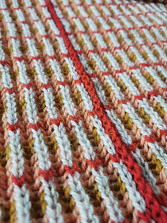 I was drawn to a waffle-like stranded colourwork design that I instantly wanted to revamp with two-colour brioche colourwork, while my friend Aleks Byrd had Estonian knitting plans with the same sample as a starting point.