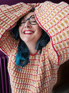 Colourwork yarn ends are encased in a contrasting stripe down the back and along the sleeves, so that the usually untidy beginning of round where colour changes happen becomes a neat feature in the design.