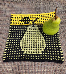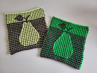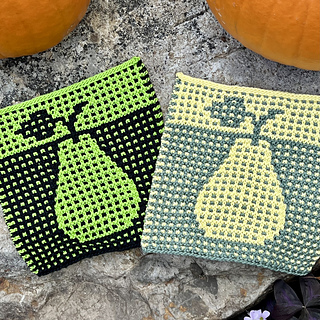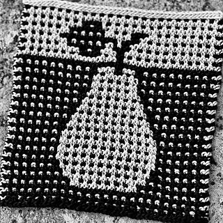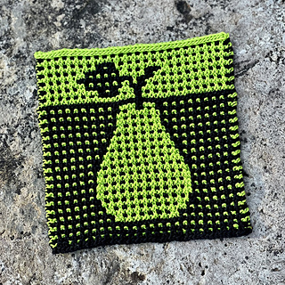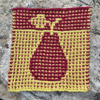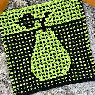 This autumnal cleaning cloth may help inspire you (or your favorite helper/host) to get the dishes done. The cloth is knitted using mosaic garter stitch. Just one strand of color works every two rows while the other strand rests at the edge. Gauge and dimensions are provided with a DK-weight cotton yarn. Choose colors that contrast well. Try your camera’s “black & white” setting to look at your yarns in grayscale and check the contrast between your selection(s). Both positive and negative charts are included in the pattern.
