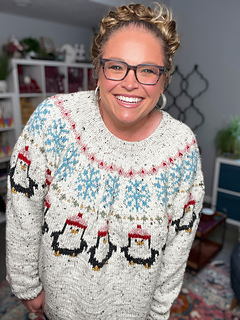 The Penguin Shuffle Knit Sweater is a playful yet polished stranded colorwork sweater that combines cozy comfort with whimsical charm. Featuring a cheerful penguin motif marching around the yoke, this sweater is designed to make you smile while still delivering a well-fitting, wearable garment you’ll reach for season after season.