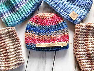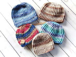 Quick and easy pattern with lots of texture. Nice stretchy pattern that fits lots of different sizes of heads. Use any worsted weight yarn, solid colors, stripes or self striping yarn. A great stash busting pattern, change colors as often as you like.