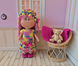 Patron (Tuto) d’une tenue au crochet pour poupée Little Mia Nines d’Onil (23 cm)