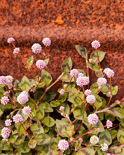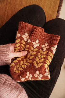 The Persicaria Socks draw inspiration from pink knotweed, Persicaria capitata. While visiting Japan last spring, I photographed these flowers against a rusty background. The image has since lingered in my thoughts, inspiring me to encapsulate that beauty in a sock.