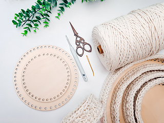If you don’t have macramé cord on hand, you can easily get a similar look and structure by holding two or even three strands of yarn together. This creates a thicker, sturdier fabric that helps the trays hold their shape beautifully—plus, it’s a great way to use yarn from your stash.