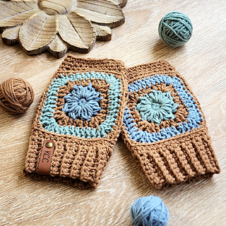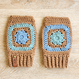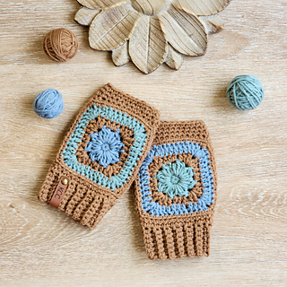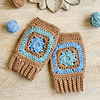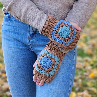 The Petals Mitts are practical fingerless gloves with a pretty floral granny square design! They are crocheted with worsted weight (size 4) yarn using a 5mm crochet hook. These mitts are perfect for keeping your hands warm while typing and texting. This is an intermediate level project.