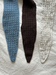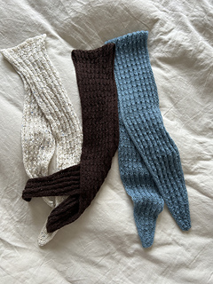 Garnforslag: ca. 50 gr. Cashmere Classic fra Cardiff Cashmere (25 g = 112 m) eller ca. 50 g Tilia fra Filcolana (25 g = 210 m) strikket I dobbelttråd eller ca. 50 g Florø fra Nordic Yarn Lab (25 g = 275 m) strikket I dobbelttråd eller ca. 50 g Merci fra Filcolana (50 g = 200 m).