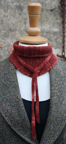 This simple bandana neckerchief combines a double I-cord tie and an I-cord edged garter stitch main section to elegant effect to create a wonderfully polished wearable accessory.