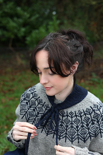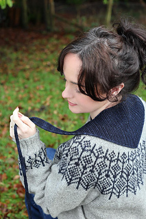 This kerchief is knitted sideways so if you’re using leftovers you can work the kerchief until you have used half your yarn and then start the decreases, rather than working to the stitch counts given.