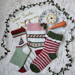 You can make crochet Christmas stockings for the whole family; there is a selection sheet included with photos of all of the options so you everyone can tick their choices and be involved in the design process. Even the youngest members of the family can enjoy taking part. Each Christmas stocking is unique, a real heirloom piece to treasure (and of course hang up on Christmas Eve).