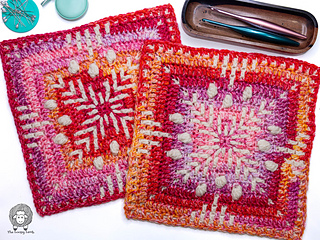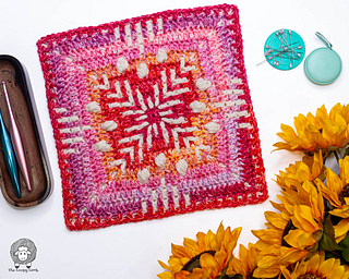 You can make it in two sizes (6” or 12”), making it ideal for sampler blankets, bags, scarves, pillows, or a full mosaic crochet blanket.