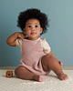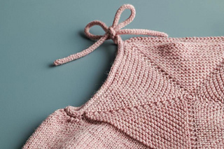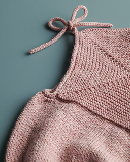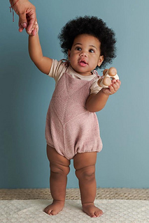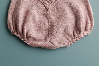 Sample: The pink romper shown here is size 6-12 months, knit in Stormy Superwash Sock in Vintage Pink. The blanket is our Arbor Blanket. You can find the free pattern here!