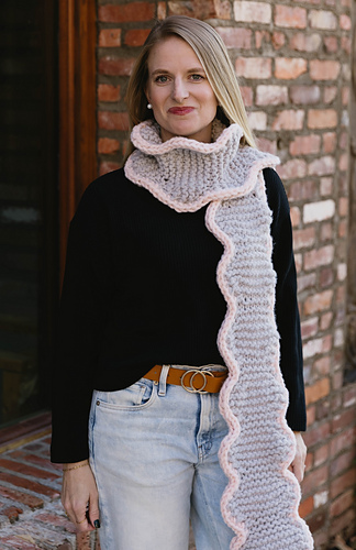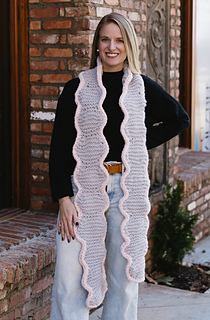 Wrap yourself in cozy elegance with the Piped Scallop Scarf, a long, soft knit scarf featuring cute scalloped edges and a contrasting applied i-cord border for a clean, modern finish. This easy-to-follow pattern works up quickly with weight 6 yarn and comes with a full video tutorial and picture guides to help you every step of the way. Its generous length makes it versatile, perfect for wrapping, draping, or styling in multiple ways.