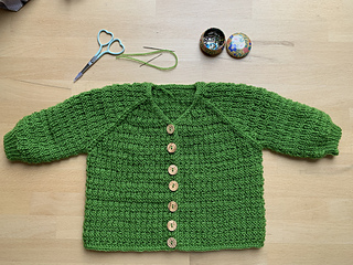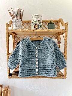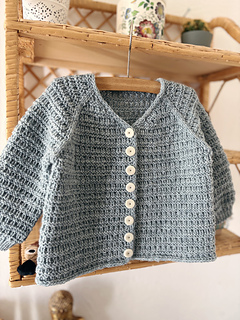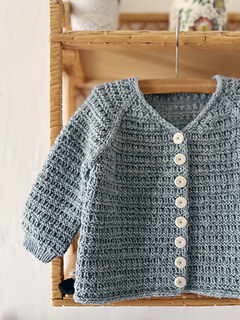 Sa construction simple et classique en fait un projet agréable à réaliser, tandis que le point texturé apporte du relief et rythme joliment les rangs. Les manches raglan offrent une aisance naturelle, idéale pour le confort et la liberté de mouvement des tout-petits.