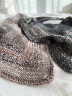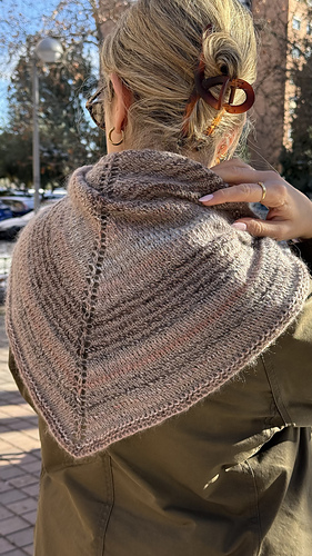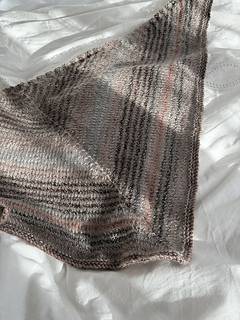 Pirita es un mini chal triangular que puedes adaptar a tu gusto. Lo he tejido con dos tipos de hilo