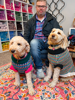The Pixel Pop Dog Sweater is a cozy, colorful, worsted-weight dog jumper that uses mosaic slip-stitch colorwork to create a pixel-style pattern—while you only ever work with one color per round. The sweater is worked top-down in the round with shaping through the chest, belly, and back for a more customizable, dog-friendly fit.