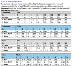 Sizes & Measurements