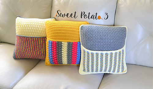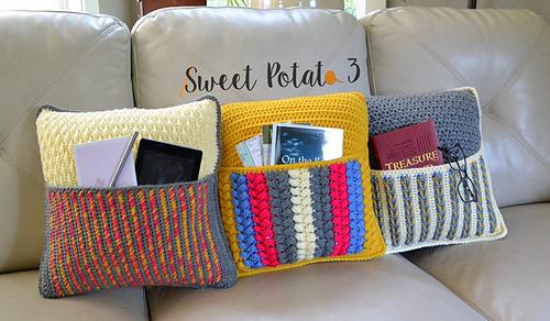 The pattern is designed so you can pick and choose the design you would like. Select one of the 3 different textured pillow covers. Next you get to select one of the 3 fun and colorful textured pockets. There are so many different combinations to choose from.