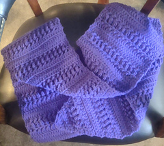 Easy pattern with a fun point at one end. Quick and easy to create. You can use any yarn to make this scarf. Crochet it in a solid color or self striping yarn.