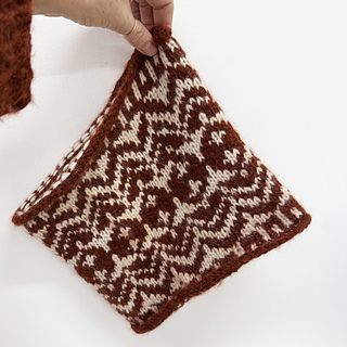 The Pointer cowl is a (pointy) bottom-up joy of colour work. It is designed using 2 colours. In this instance burnt orange and cream. I was influenced by triangles and arrows that appear in urban settings. This pattern has come out of my fascination for pattern, the order of the numbers within the pattern, how the sequencing changes and pattern emerges. This is a super soft cosy cowl. A perfect addition to your wardrobe for when the weather gets colder.