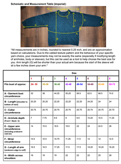 Note: Yardage is an approximation and is calculated using the recommended measurements (see schematics on page 5-6), plus approximately 5% extra. Most testers used less than the estimated yardage amounts above. Allow for extra yardage if choosing to add length. Yardage can vary depending on your gauge and knitting, so I always recommend buying extra in case you require more yardage.